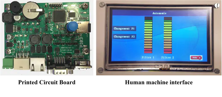 The mission of EZA Water was to reprocess used water, there by, improve the comfort and autonomy of motorhome owners. The entrusted mission was to design an intelligent and low-consumption electronic system to check the operation of the hydraulic system using sensors (i.e., detecting the clogging and leaking problems). This system can communicate with the user via a touch screen and a beep sound. The maintenance software makes it possible to modify the parameters of the system and to recover the recorded data files with a micro SD card. Thus, the company has a simple and effective tool to analyze the causes of malfunction and ensure product traceability.