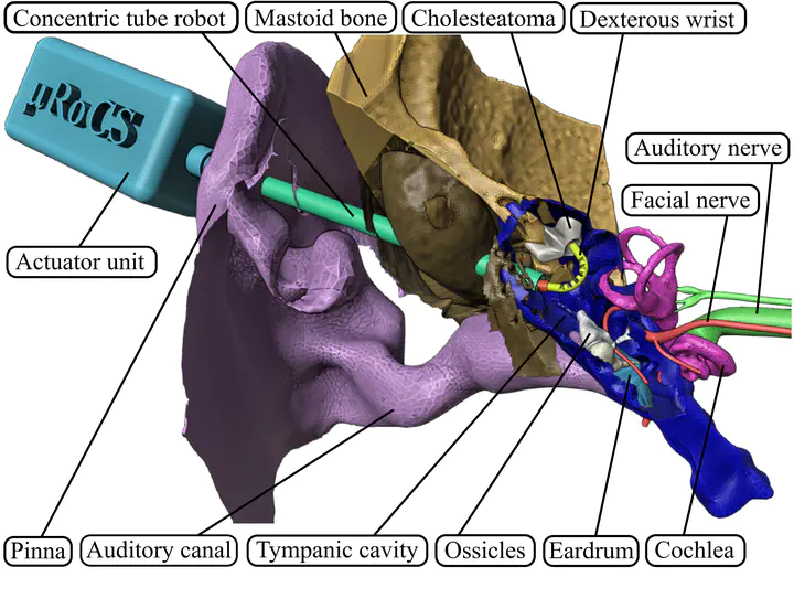 Photo by DVA NguyenEach year, around one new case per 10,000 inhabitants in Europe is infected by cholesteatoma. It is a serious form of chronic otitis presented as an abnormal proliferation of epidermal tissue, with desquamation and destruction of surrounding bones. As a consequence, complications can be dizziness, meningitis (or other brain infections), facial palsy or total and irreversible deafnes. The only current treatment is to remove the infected tissues through a surgical operation. However, the associated risk of recurrences due to residual cholesteatoma can reach 23-25% of cases depending on the country and age group. Follow-up strategy is systematically applied and induces a painful second examination of the patient, along with additional costs. The complete removal of cholesteatoma is thus a considerable limitation of current practices due to the limited dexterity of the surgical tools working in the tiny and confined space of the middle ear cavity.